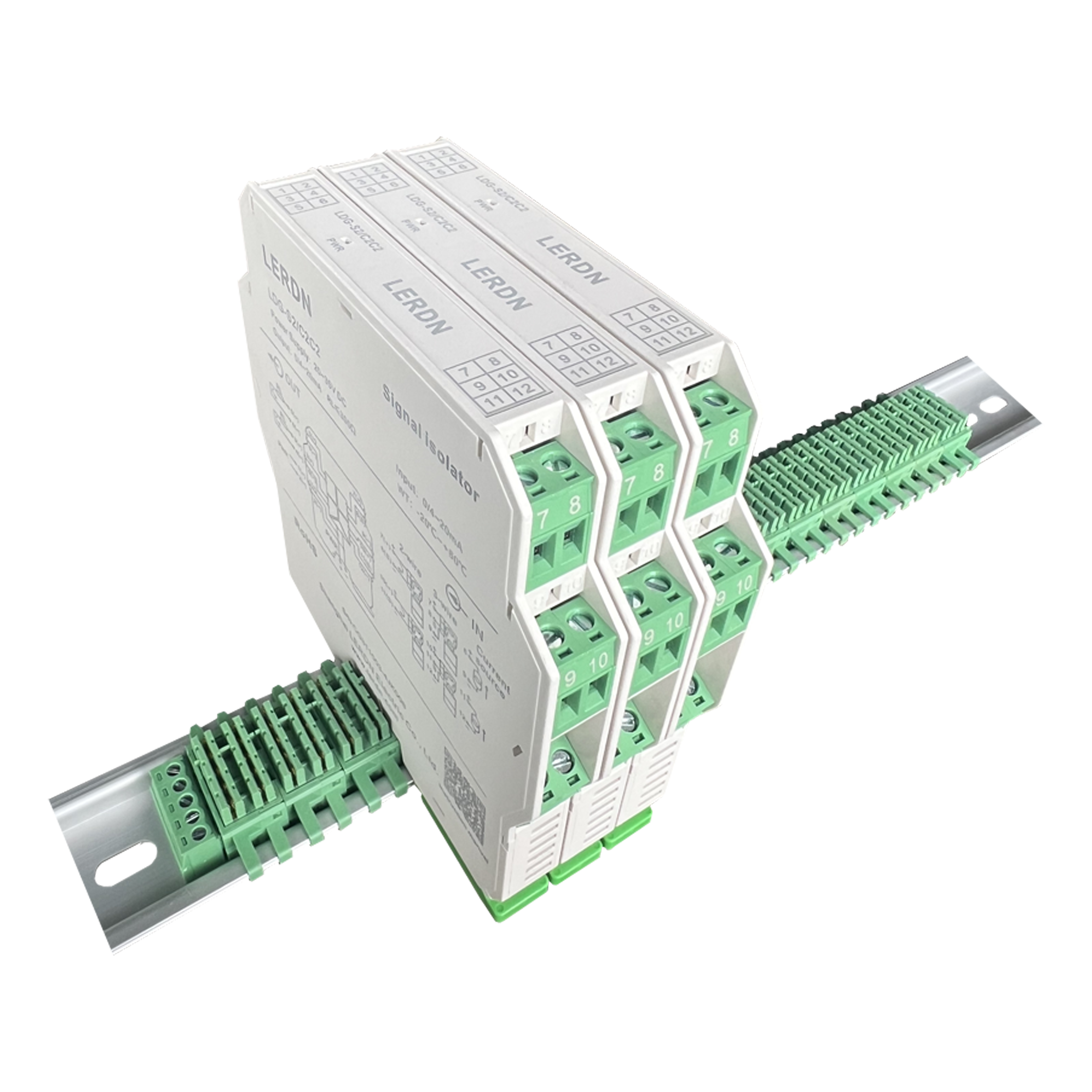 适用于信号隔离器导轨总线供电时的电源串联桥接。